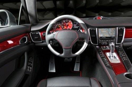 在內(nèi)飾中,SpeedART為Panamera換上帶有F1風(fēng)格換檔撥片的運(yùn)動(dòng)方向盤,顧客可以選擇鋁、木材或碳纖維裝飾。此外PS9-650還擁有碳纖維裝飾面板、特制的地毯、采用手工縫合的門板和座椅,以及經(jīng)過調(diào)整的儀表盤等。 內(nèi)容來自123456