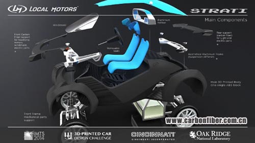 Local Motors方面表示,Strati汽車(chē)所用的碳纖維復(fù)合材料由Sabic創(chuàng)新業(yè)務(wù)部獨(dú)家提供。該新型3D打印汽車(chē)全身由40個(gè)部件組成。其中,13-20%為碳纖維增強(qiáng)型復(fù)合材料,87-80%為ABS樹(shù)脂。