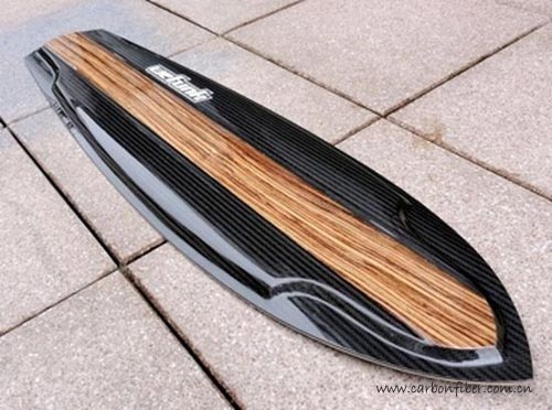 碳纖維滑板是由工業(yè)設(shè)計(jì)師和F1的復(fù)合技術(shù)人員Luxat在德國(guó)科隆設(shè)計(jì)出來(lái)的。主要使用碳纖維,中間使用楊柳木,他們用0.5毫米碳纖維拋光到鏡面精加工的單板鑲嵌完成。