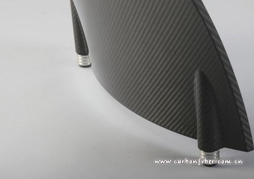 碳纖維茶幾內(nèi)部的是蜂窩結(jié)構(gòu),外面是3K斜紋碳纖維與環(huán)氧樹脂浸漬而成。 整體重量只有13磅。接合處鑲嵌激光刻的富勒公司設(shè)計的不銹鋼獎?wù)?,茶幾腳部嵌有6061鋁與硅橡膠墊腳,以確保移動的時候能夠充分保護(hù)地板。