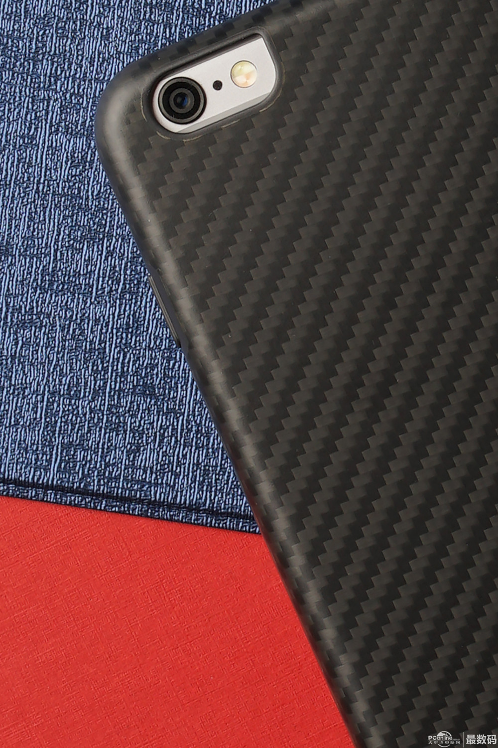 Evutec Karbon Sl保護套的厚度大概有1.5毫米左右,或許不算很薄,但大家都知道iPhone 6有一個比較煩人的地方,就是它那顆突起的攝像頭,套上Evutec Karbon Sl保護套以后背部恰好略微高出于攝像頭,平放在桌面上再也不用擔心會磨損攝像頭,影響成像效果了。