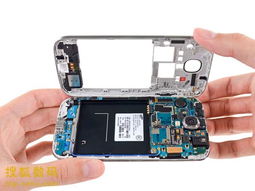 對(duì)于追求輕薄緊湊的智能手機(jī)來(lái)說(shuō),柔韌性也是這種材料的另一大問(wèn)題。由于手機(jī)的信號(hào)天線都安裝在背部,所以易彎曲的塑料后蓋更容易讓脆弱的天線連接器受損。天線連接器通常是一些彈簧狀的小薄片,用于和后蓋進(jìn)行接觸。雖然它們具備一定的彈力,但受壓過(guò)大可能就無(wú)法回彈了。受此問(wèn)題影響的一個(gè)典型例子就是Tegra 3版的HTC One X,由于天線連接器被壓壞,這款設(shè)備經(jīng)常會(huì)出現(xiàn)Wi-Fi和藍(lán)牙信號(hào)丟失的問(wèn)題。下圖是Galaxy S4的拆解圖,當(dāng)中那些金色的小凸點(diǎn)就是天線連接器。 copyright 123456