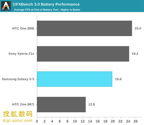 因?yàn)榻饘倬邆涓叩膱?jiān)韌性,其表面更難以被劃傷。但因?yàn)殛?yáng)極化處理,在暴露于未經(jīng)處理的表面時(shí),劃傷會(huì)更容易顯現(xiàn)。金屬的另一關(guān)鍵優(yōu)勢(shì)是超高的導(dǎo)熱性,這在散熱受限的情形下也就帶來(lái)了更好的性能。無(wú)論如何,散熱片可都是鋁合金和/或銅材質(zhì)的,而非玻璃或聚碳酸酯。這個(gè)問(wèn)題的具體體現(xiàn)可以參考Galaxy S5和HTC One M8在T-Rex性能測(cè)試中的對(duì)比。如下圖所見(jiàn),HTC One M8的幀率要明顯高于Galaxy S5。 本文來(lái)自123