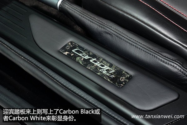 兩款車內(nèi)飾均采用了全黑設(shè)計(jì),并應(yīng)用一些紅色元素來(lái)與外觀的紅色制動(dòng)卡鉗進(jìn)行呼應(yīng),比如搶眼的紅色換擋撥片以及細(xì)膩的紅色針腳等等。迎賓踏板來(lái)上則寫上了Carbon Black或者Carbon White來(lái)彰顯身份。