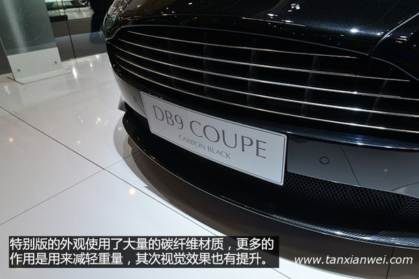 在本屆車展上,阿斯頓·馬丁帶來(lái)了一款DB9Carbon Black車型,其實(shí)這款特別版還有一款白色車身的車型Carbon Black,但本屆車展只有這款黑色外觀,下面我們就來(lái)看看這款特別版有那些特別之處。