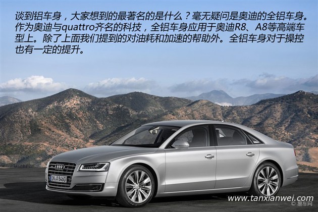 談到鋁車身,就不得不提到奧迪。作為奧迪與quattro齊名的科技,全鋁車身應(yīng)用于奧迪R8、A8等高端車型上。除了上面我們提到的對油耗和加速的幫助外。全鋁車身對于操控也有一定的提升。編輯第一次開A8的時候就被它的駕駛感受驚呆了,你很難想象如此碩大的車型能擁有那么靈活的駕駛感受。甚至于在操控方面比更緊湊的A4還要強(qiáng)。如果您不相信的話,有時間不妨去4S店親自對比感受一下。也歡迎您與編輯交流。 本文來自123