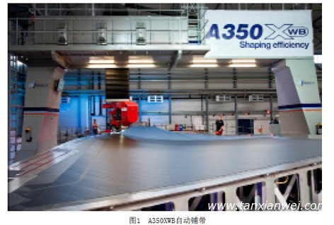 自動鋪帶主要適用于尺寸較大,曲率較為平緩的機翼、尾翼等翼面類結構。經(jīng)過40多年的發(fā)展,自動鋪帶技術在歐美國家已經(jīng)成熟,并大規(guī)模應用于航空復合材料結構件的制造,如波音777飛機機翼、水平和垂直安定面蒙皮,C-17運輸機的水平安定面蒙皮,波音787機翼蒙皮,A330和A340水平安定面蒙皮,A340尾翼蒙皮,A380的機翼蒙皮和安定面蒙皮,A350機翼蒙皮和中央翼盒,A400M機翼蒙皮等。A400M機翼大梁采用的是自動鋪帶加熱隔膜成型工藝。圖1為A350XWB自動鋪帶設備。 123,123