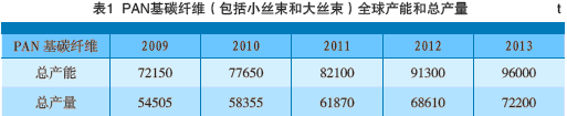 聚丙烯腈(PAN)原絲是制備碳纖維最主要的原料。對于“小絲束”(小于24K),2010年產(chǎn)能約為57650t,2013年為71000t。由于這些產(chǎn)能僅僅是名義上的產(chǎn)量,并不代表實際產(chǎn)能,因此采用了產(chǎn)量系數(shù)進(jìn)行校正。