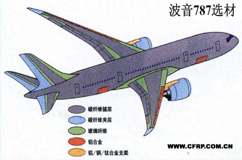 主要應(yīng)用部位:復(fù)合材料將占全機(jī)結(jié)構(gòu)重量50%以上,故全機(jī)主要結(jié)構(gòu)均將用復(fù)合材料制成,包括機(jī)翼、機(jī)身、垂尾、平尾、發(fā)房、地板梁及部分艙門、整流罩等,這是世界上第一個(gè)采用復(fù)合材料機(jī)翼和機(jī)身的大型商用客機(jī),其應(yīng)用遠(yuǎn)遠(yuǎn)超過B777和A380,為世界之最。