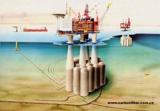 對于深海油田,將平臺錨固到海底用的纜繩(tether)和連接油井口到平臺的管材(riser)是重要組成部分。如果用鋼材制造,質(zhì)量重,需用大平臺的漂浮尺寸,必將增大投資。如用CFRP制造,自身減質(zhì)量效果及減質(zhì)量波及效果十分顯著。