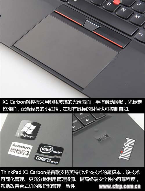 當(dāng)然作為一款專門面向商務(wù)用戶的產(chǎn)品,英特爾vPro是必不可少的一部分,該技術(shù)可簡(jiǎn)化管理、更充分地利用管理資源、提高終端安全性的可靠程度,幫助改善臺(tái)式機(jī)的系統(tǒng)和管理一致性。ThinkPad X1 Carbon是第一款支持英特爾vPro技術(shù)的超極本,所以我們把它定義為首款專門針對(duì)商務(wù)用戶打造的超極本,那么接下來(lái)我們就一起來(lái)詳細(xì)了解一下ThinkPad X1 Carbon。