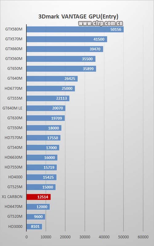 對(duì)于機(jī)身厚度不足18mm的超極本來(lái)說(shuō),由于機(jī)身內(nèi)部空間非常有限,為保證整機(jī)穩(wěn)定性,通常不會(huì)采用獨(dú)立顯卡,所以采用HD4000核心顯卡的ThinkPad X1 Carbon游戲性能非常有限,其3Dmark VANTAGE GPU項(xiàng)的得分,雖然與上一代核心顯卡HD3000相比性能的提升非常明顯,但和新一代獨(dú)立顯卡還存在較大的差距,不過(guò)仍然可在中低畫(huà)質(zhì)下滿足《街霸4》、《實(shí)況足球》等對(duì)顯卡性能要求不高的游戲。