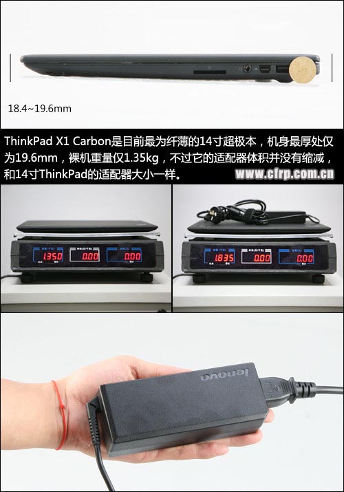 在厚度與重量方面,ThinkPad X1 Carbon超越了英特爾對(duì)超極本的要求,整機(jī)纖薄程度更加極致,其中最薄處僅為8mm,機(jī)身最厚的地方也僅為19.6mm,而且得益于碳纖維材質(zhì)的使用,它裸機(jī)重量1.35kg在超極本中也是相當(dāng)輕的水平,移動(dòng)便攜性非常優(yōu)秀。