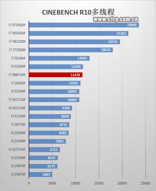 ThinkPad X1 Carbon搭載的第三代酷睿i7 3667UM低功耗處理器是目前主流超極本中定位較高的一款,它擁有兩個(gè)物理核心,支持英特爾超線程技術(shù)和睿頻2.0。在CINEBENCH R10處理器多線程測(cè)試中,i7 3667UM取得了11478分,其性能已超過(guò)上一代標(biāo)準(zhǔn)電壓雙核i7處理器,與新一代酷睿i5 3320性能表現(xiàn)相近,滿足日常應(yīng)用對(duì)CPU性能的需求。