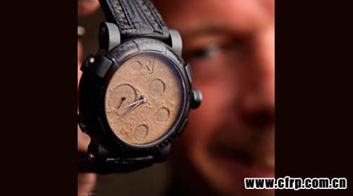 曾經(jīng)推出過冰海沉船泰坦尼克DNA系列手表的羅曼·杰羅姆(Romain Jerome)在該系列成功面世后,其第二代Moon Dust DNA系列腕表將碳纖維的元素運(yùn)用在表殼上,它的表殼是阿波羅11號航天飛行器太陽能電池上的碳纖維摻雜鈦合金。表盤內(nèi)的月亮塵埃來自首次登月收集的月球巖石,表帶的材質(zhì)則是來源于飛行員曾經(jīng)在國際空間站穿著的衣物。