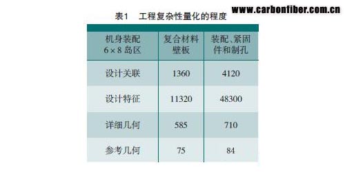 事實(shí)上,我們嘗試著量化大型航空結(jié)構(gòu)復(fù)合材料壁板的復(fù)雜性。舉個(gè)例子,對(duì)于一個(gè)由桁條和框分割的包含6×8 個(gè)島區(qū)的典型商用飛機(jī)的的航空壁板,得到如表1 所示的一組統(tǒng)計(jì)數(shù)字。創(chuàng)建了幾何參考并且保留在CAD 環(huán)境中。細(xì)節(jié)的幾何元素手動(dòng)創(chuàng)建但沒(méi)有在三維CAD 環(huán)境中提交并確認(rèn)。除了幾何數(shù)據(jù),對(duì)于復(fù)合材料蒙皮有11320 個(gè)非幾何特征,對(duì)于裝配件、緊固件、孔等有48300 個(gè)非幾何特征。這些特征不屬于三維CAD 或者PLM 的一部分。另外,這些關(guān)系沒(méi)有在三維CAD 或者PLM 中捕獲,也沒(méi)有在設(shè)計(jì)意圖中體現(xiàn)。在CAD 和PLM 軟件中有超過(guò)90% 的數(shù)據(jù)沒(méi)有捕獲并且沒(méi)有有效管理。 本文來(lái)自123