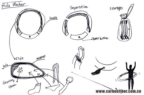 來(lái)自伊萊克斯設(shè)計(jì)大賽的獲獎(jiǎng)作品碳纖維Hula Washer(呼啦圈洗衣機(jī))是一款既可以讓你強(qiáng)健身體又可以順便清洗一下衣物的超級(jí)創(chuàng)意產(chǎn)品。