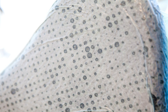 Despite having pre-cut the cloth, after wetting, the cloth stretched slightly, necessitating further cuts in order for it to drape properly. To our surprise, the scotch tape was much easier to remove with the cloth wetted, leaving little fraying compared to removing the tape while dry. The layer with masking tape did not perform similarly, so that layer was placed on first, tape side down. We left the tape in since it would not affect the performance or the appearance of the inner layer. The ends that draped over the edges were taped to the front side of the seat. These edges would be trimmed later so we did not mind placing extra tape on them to secure the back layers firmly to the foam.