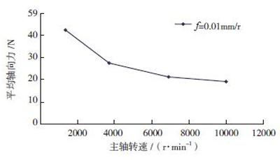 從圖中可以看出:軸向力隨著轉(zhuǎn)速的增加而呈現(xiàn)減小的趨勢(shì),曲線的曲率隨著轉(zhuǎn)速的增加逐漸減小,在轉(zhuǎn)速超過(guò)6000r/min 后,曲線已經(jīng)變得很平緩。由于切削熱的存在,轉(zhuǎn)速越高,鉆削溫度越高,且高速下,對(duì)鉆床剛度要求也高。因此,轉(zhuǎn)速不宜太高,建議轉(zhuǎn)速取在3000~6000r/min范圍內(nèi),對(duì)于剛度好的機(jī)床,可以適當(dāng)提高轉(zhuǎn)速;對(duì)于剛度差的機(jī)床,可以適當(dāng)降低轉(zhuǎn)速。
