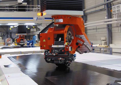此類設備采用150mm或300mm帶寬的標準碳纖維帶子,具有非常高的生產(chǎn)效率和最佳的壓實能力,在生產(chǎn)中獲得了成功應用,超過34臺的此類設備已經(jīng)投入運行最長達13年以上。這種鋪帶機的典型應用是制造水平尾翼、襟翼、方向舵、升降艙、機翼等飛機部件,基本上已成為制造上述所有部件的標準技術方案。
