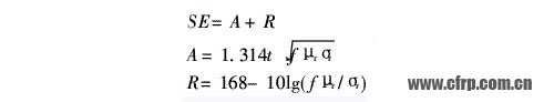 根據(jù)Schelkunoff電磁屏蔽理論,材料的電磁屏蔽效能SE由吸收損耗A、反射損耗R和內(nèi)部反射損耗B組成。當(dāng)A大于10dB時,B可以忽略,則屏蔽效能是A和R之和,用公式表示為: