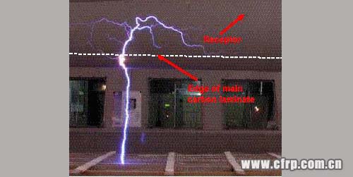 由上圖知,沒(méi)有安裝分流器的主碳纖維層的前緣比接受器更輕易受到閃電襲擊