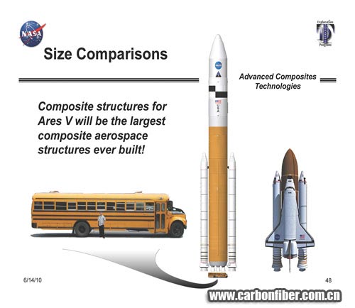 圖6 美國(guó)國(guó)家航空航天局(NASA)的運(yùn)載火箭(先前的“戰(zhàn)神V”)可以成為因采用OOA預(yù)浸料而節(jié)省大筆金錢的一個(gè)很好例證。該項(xiàng)目如果采用12m×24m的熱壓罐,估計(jì)成本達(dá)到$1億。NASA的復(fù)合材料與結(jié)構(gòu)高級(jí)顧問(wèn)Mark Shuart相信,一旦直徑達(dá)10m的火箭筒身部分被證明可以使用OOA工藝,那么航空航天復(fù)合材料的制造將發(fā)生極大的變化。圖片來(lái)源:NASA