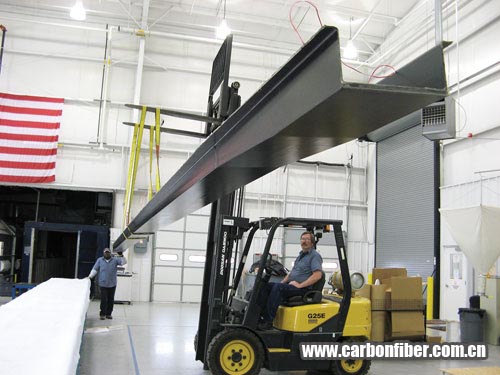作為該計(jì)劃第二階段的一部分,波音下屬的圣路易斯公司制造了長(zhǎng)達(dá)21m的部件,包括一個(gè)主梁和3種不同的機(jī)翼表皮結(jié)構(gòu):一種厚板增強(qiáng)的表皮,使用了Grafil公司的HR 40 12K高模量碳纖維;一種增硬的表皮,使用了氰特T40/800B中模量碳單向帶以及由氰特Thornel T-650/35 3K碳纖維制成的高強(qiáng)度織物;一種夾層結(jié)構(gòu)的表皮,使用了非金屬的蜂窩芯。