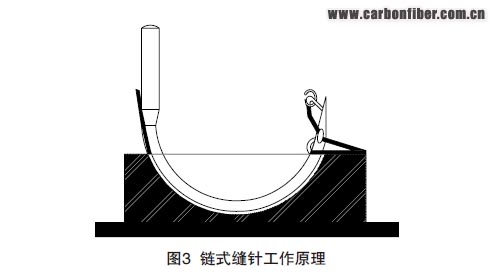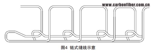 (2)鏈?zhǔn)娇p合??p頭固定于懸臂機(jī)械手上,依靠機(jī)械手來(lái)完成復(fù)雜的縫合動(dòng)作。因此,鏈?zhǔn)娇p合可以完成所有復(fù)雜曲面預(yù)制體的縫合,但由于縫針為彎月形縫針,所以鏈縫通常適用于相對(duì)較薄的預(yù)制體。鏈?zhǔn)娇p合的最大縫合厚度為10mm,當(dāng)纖維預(yù)制體厚度小于1mm,且零件型面曲率較大時(shí),在雙面縫合工作平臺(tái)的限制下無(wú)法使用鎖式縫合;而對(duì)于Tufting縫合,因?yàn)榱慵^薄,縫線不易留在零件內(nèi),所以對(duì)于此種預(yù)制體的縫合最好采用鏈?zhǔn)娇p合方式。 本文來(lái)自123