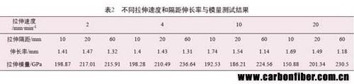 查閱國內(nèi)外大量的關(guān)于碳纖維力學(xué)性能測試的文章,發(fā)現(xiàn)測試過程中的拉伸速度對碳纖維模量測試方面僅有少量研究,未能找到拉伸速度對結(jié)果的影響具體有多大,從而對測試數(shù)據(jù)進(jìn)行修正。