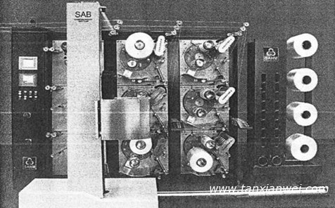 德國Sahm公司開發(fā)并銷售了新的高性能纖維自動卷繞設備“Twinstar II 360XE(圖9)”,它配備有新的筒管自動化處理系統(tǒng)(圖10),它通過電子數(shù)據輸入所有卷繞參數(shù)而實現(xiàn)快速高效的產品更換、電子控制卷繞比、紗線定長、定時、定重、定卷繞直徑和周期等6大特點。